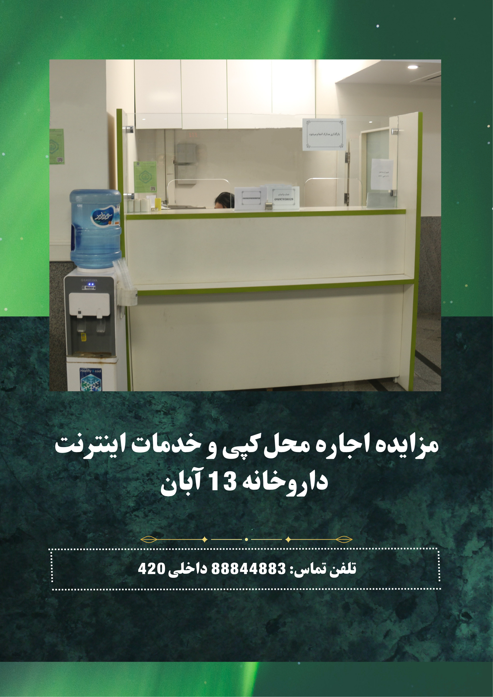 مزایده اجاره محل کپی و خدمات اینترنت داروخانه 13 آبان